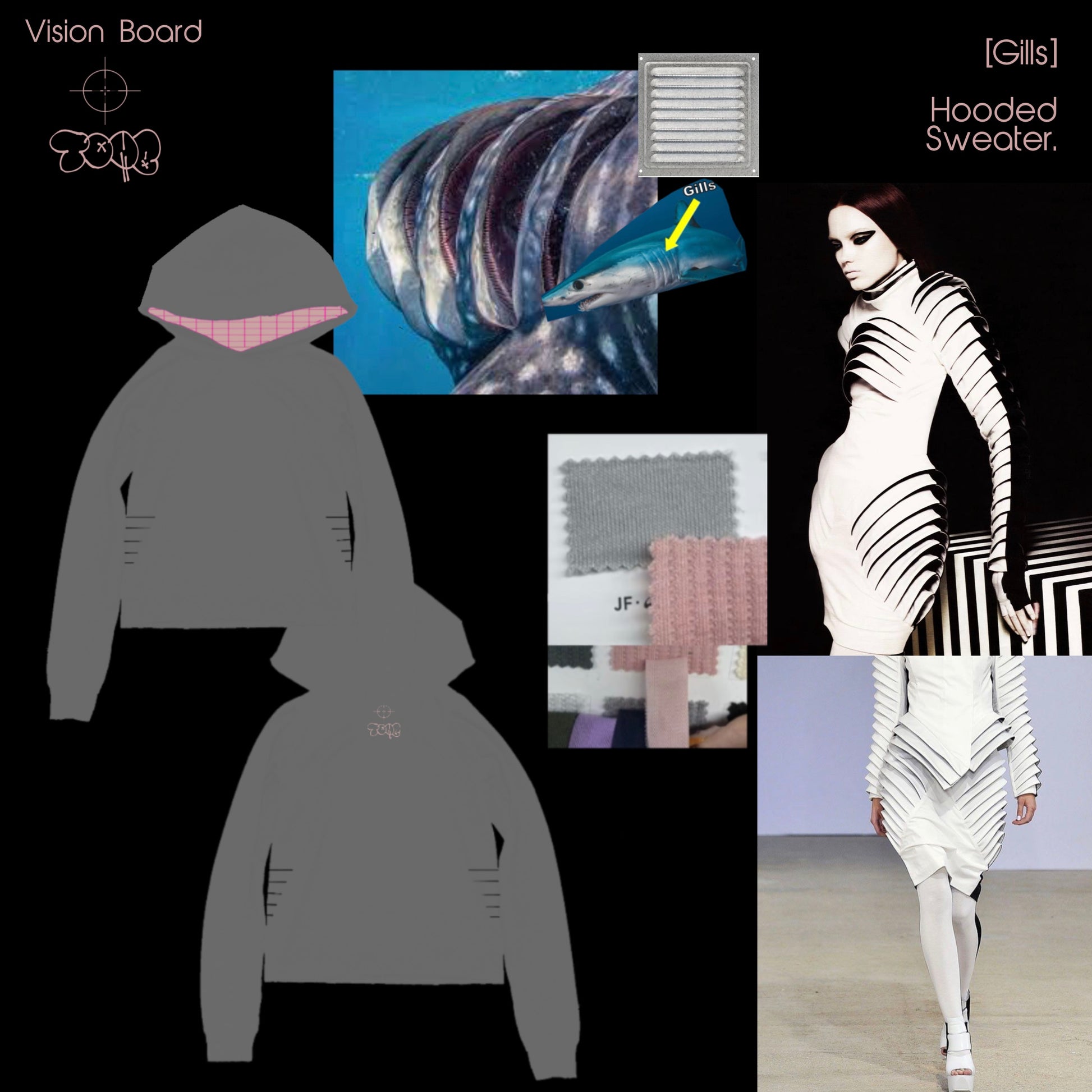 The pleated detailing, inspired by gills, adds subtle structure while keeping the overall look clean and wearable. A graphic-free hoodie, focusing instead on fit, construction, and everyday comfort.