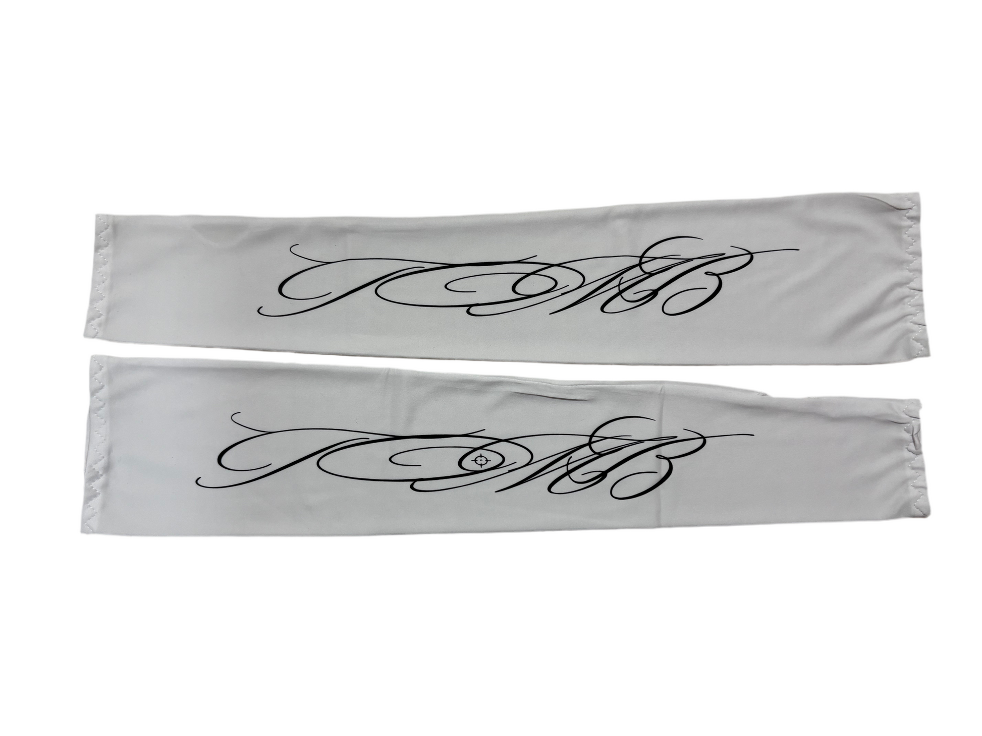Inspired by basketball sleeves but made to be worn anywhere, anytime. I put my new hand-drawn calligraphy logo on these sleeves, perfectly placed along the forearm, plus my signature crosshair logo on one arm… a double meaning behind the name.